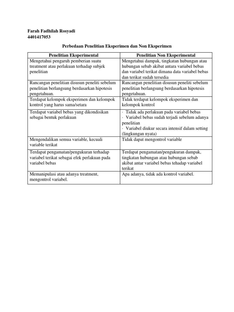 Perbedaan Penelitian Eksperimen Dan Non Eksperimen Pdf