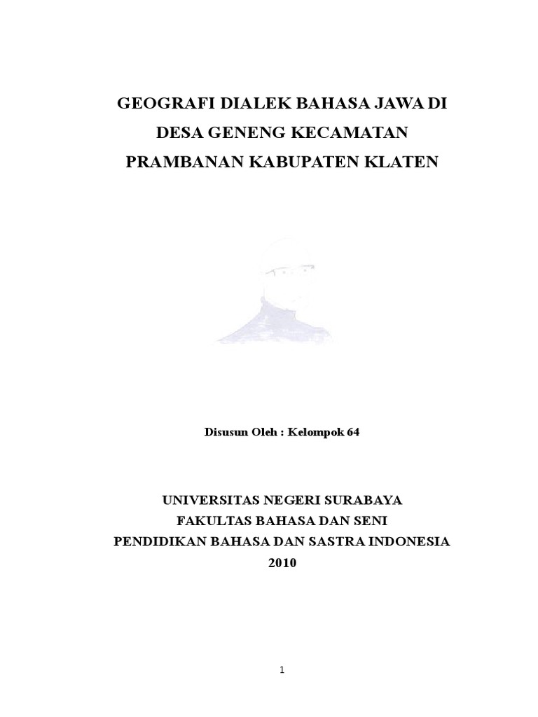 Geografi Dialek Bahasa Jawa Di Desa Geneng Kecamatan Prambanan Kabupaten Klaten Pdf