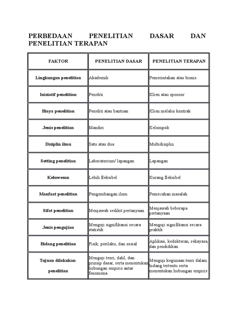 Perbedaan Penelitian Dasar Dan Penelitian Terapan Pdf